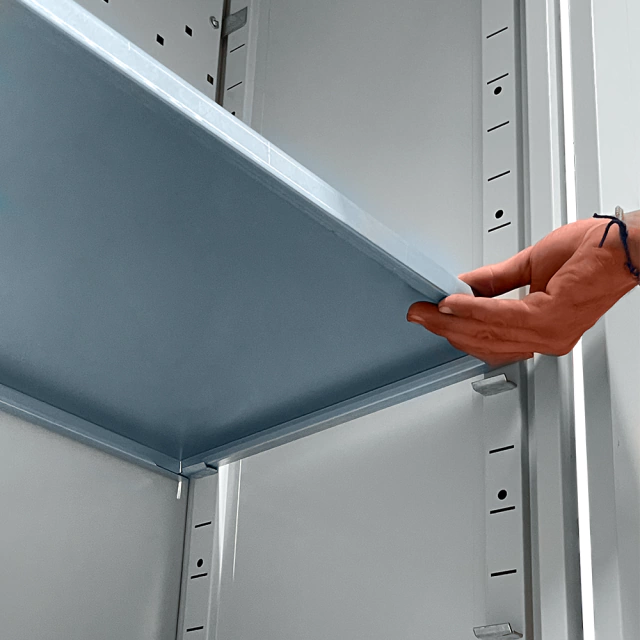 3 Planos de carga de 869x393x25h mm de profundidad, regulables en altura, sin bulones ni tornillos