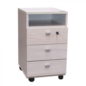 • Posee 3 cajones con correderas metálicas (superior con cerradura) y 1 estante.