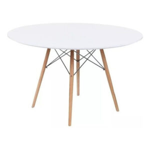 1 MESA EAMES VIDRIO REDONDA DE 0.80mts – Mesa redonda de diseño hecha en tapa VIDRIO. Patas de madera y estructura metálica.