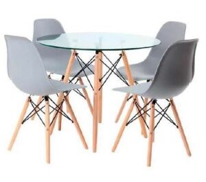 Combo Eames Mesa Vidrio 0.80mts Redonda + 4 Grey
