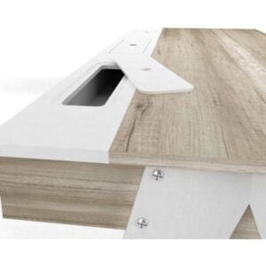Fabricado en MDP de baja densidad texturado. y MDF laqueado blanco poliuretánico. Patas con refuerzos.