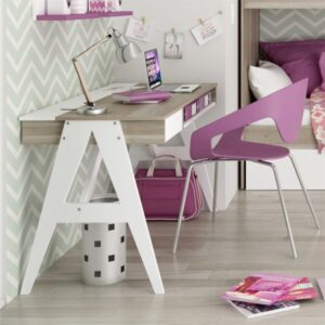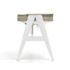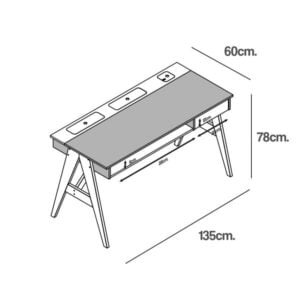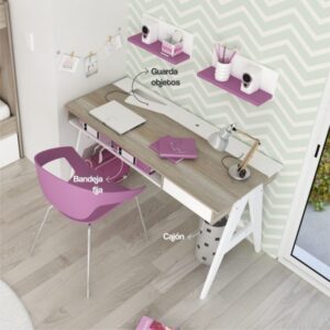 Un mueble versátil con mucho diseño y muchísima funcionalidad. Bandeja inferior porta notebook/libros, cajón con guías metálicas, gavetas traseras y pasa-cables.