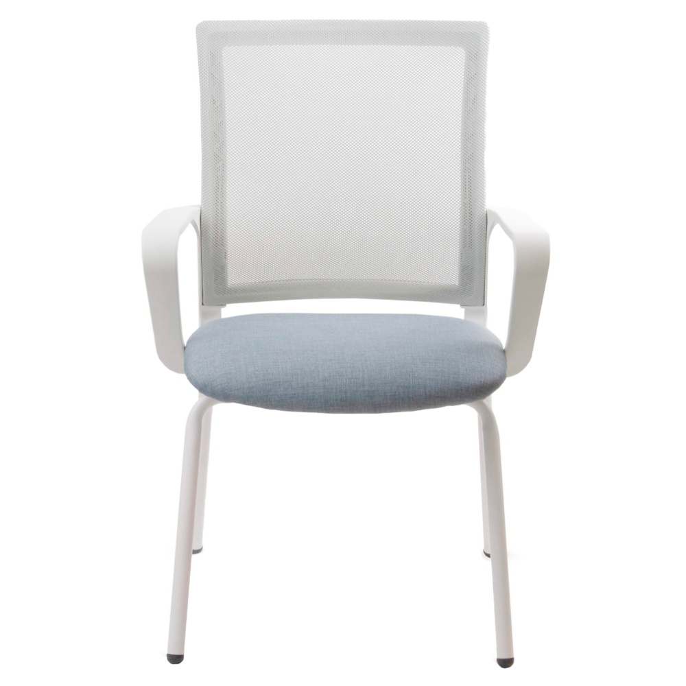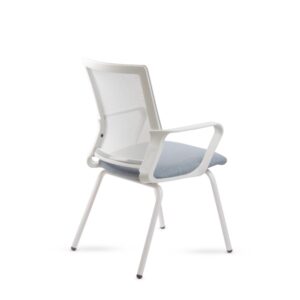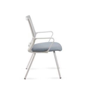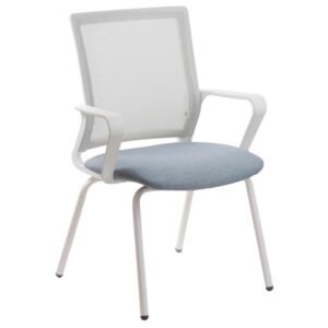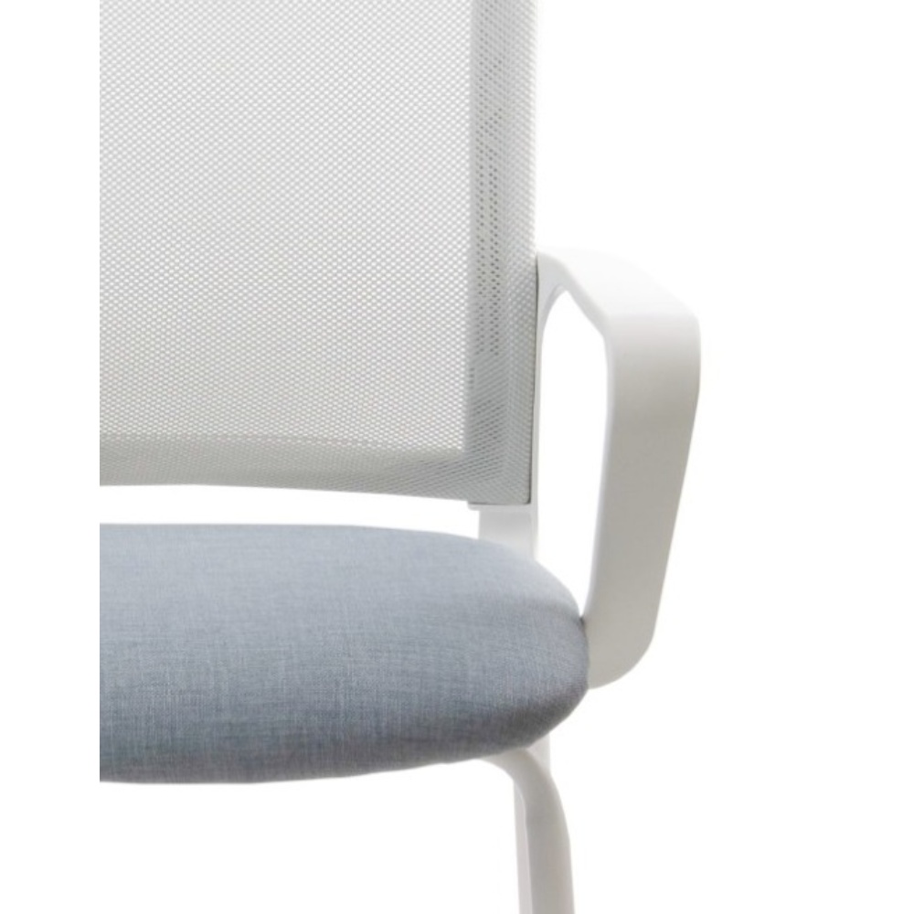 • Respaldo tapizado en tela de red mesh gris claro.