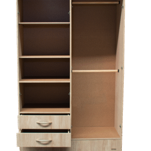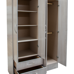 - Posee 2 cajones con correderas metálicas, 3 estantes móviles, 2 estantes fijos y 2 barrales para colgar sus prendas.
